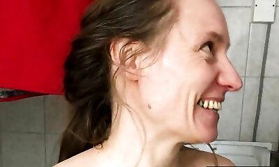 Horny 52 Cougar with outstanding hooters playing with her nipples until she cums in her bath.