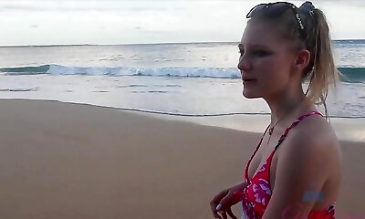 Shy towheaded Hanna Rey with glasses having lovemaking with her boyfriend