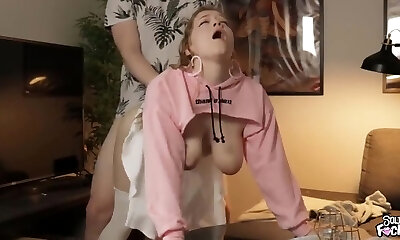 This buxomy curly blonde cougar looks amazing while gargling a big cock and taking another one from behind
