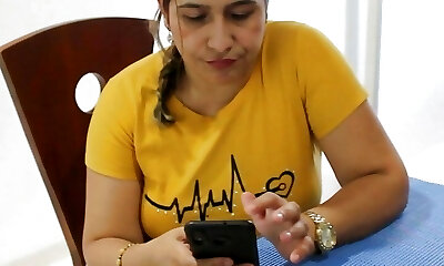 Tamil aunty was sitting on the chair and working I gently stroked her thigh and inhaled so many breasts and had hot bang-out with her.
