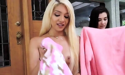A duo of Brazilian stepbrothers have sex for the first time without their step-dads knowing. He cums in her mouth.