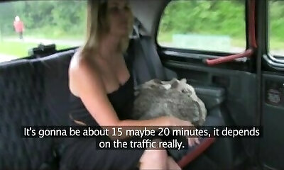 Chubby busty amateur anal banged in fake cab in public