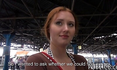 Busty red-haired European chick Helen drilled in the bus stop